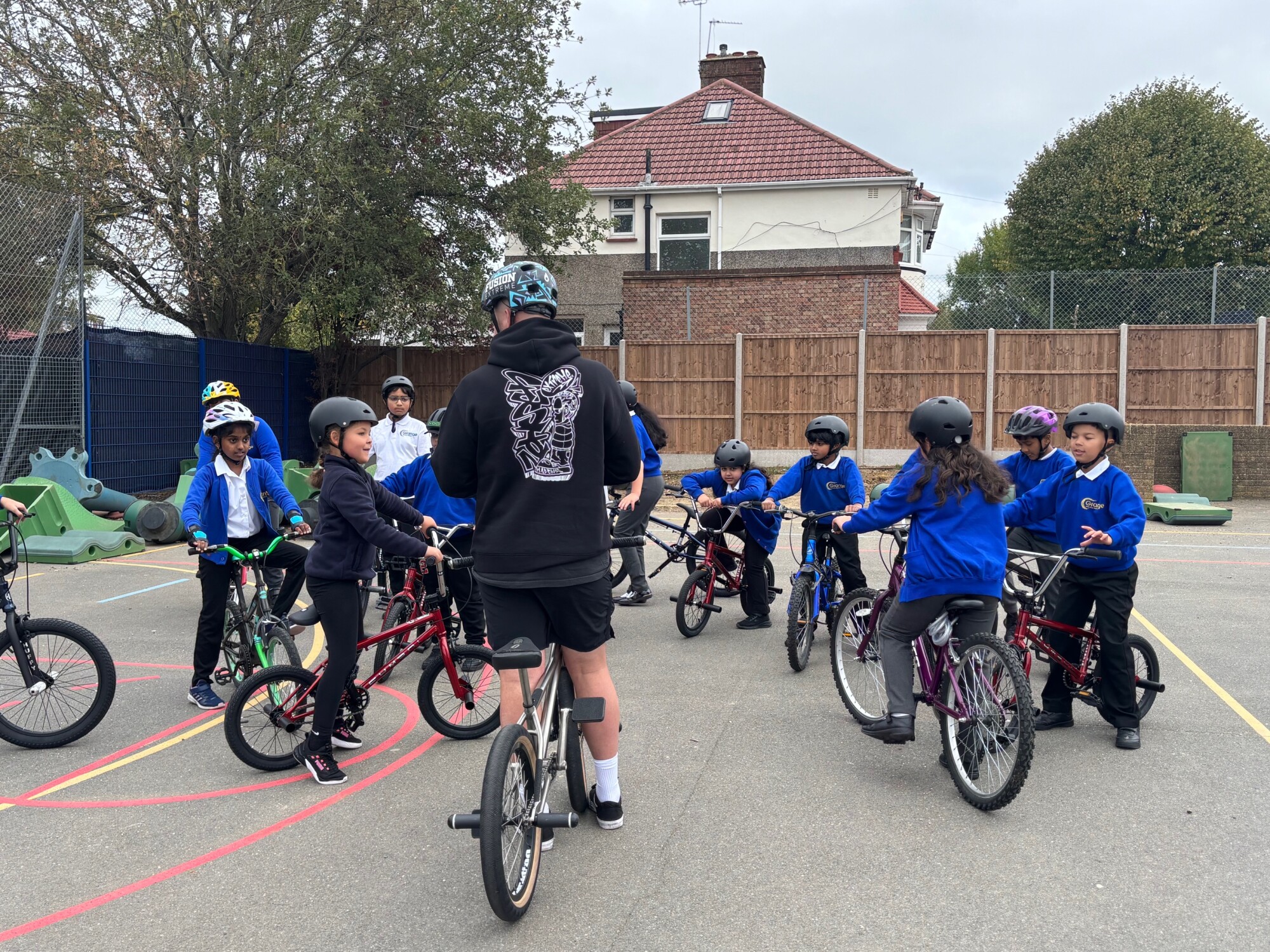 Grange Primary School proudly celebrated achieving the TFL travel for life Gold Accreditation for promoting active, safe and sustainable travel. To mark the achievement BBC Radio London visited the school, where pupils showcased cycling and scooting skills and enjoyed a thrilling stunt show by Fusion Extreme Matti Hemmings.